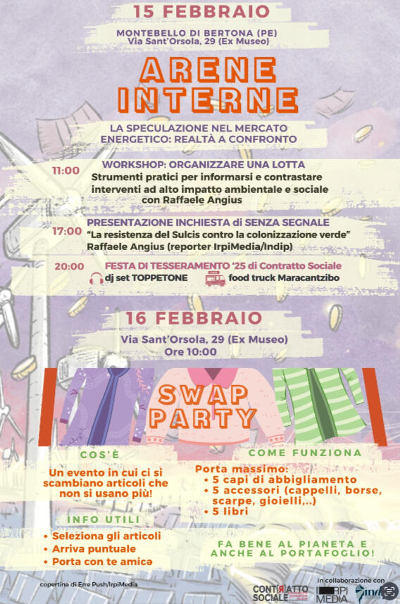 Continuano gli incontri di ARENE INTERNE, ma non solo! Ad aggiungersi a questo appuntamento ci saranno anche la FESTA DI TESSERAMENTO '25 e lo SWAP PARTY!ARENE INTERNELA SPECULAZIONE NEL MERCATO ENERGETICO: REALTÀ A CONFRONTO🗓 15 febbraio presso l’Ex Museo in Via Sant’Orsola 29 a Montebello di Bertona